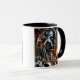 A futuristic cyborg in a burning world. mug