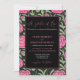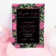 A Garden of Love. Elegant design featuring pink peony flowers pattern and trendy calligraphy on black background. This design is perfect for your simple, elegant floral wedding. The text can easily be personalised for a unique one of a kind design for your special day.