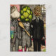 A garlic, an artichoke, and a spaghetti fork funny postcard