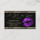 A Gift Certificate Card. Purple glitter lips on a black background with gold accents. (For matching products and designs type in Keyword: GLITTER LIPS ) (Note: Not Real Glitter, this is a print) 📌If you need further customisation, please click the "Click to Customise further" or "Customise or Edit Design"button and use our design tool to resize, rotate, change text colour, add text and so much more.⭐This Product is 100% Customisable. Graphics and / or text can be added, deleted, moved, resized, changed around, rotated, etc... ⭐99% of my designs in my store are done in layers. This makes it easy for you to resize and move the graphics and text around so that it will fit each product perfectly. 📌 (Please be sure to resize or move graphics if needed before ordering) You can also "TRANSFER DESIGN" on other Zazzle products and adjust the design to fit most of Zazzle items. (button is down on the right side of the page) This design is made with high resolution vector and/or digital graphics for a professional print. 📌NOTE: (THIS IS A PRINT. All Zazzle product designs are "prints" unless otherwise stated under "About This Product" on the left side of this page) The design will be printed "EXACTLY" like you see it on the screen and on the product...so please make sure when you do your changes on the resizing of any of the graphics or text that it fits in the areas correctly and that your spelling and wording is how you like it to be in size, colour and font. If you have any questions about the "DESIGN ONLY" or need help please contact me at ✉ siggyscott@comcast.net or visit my store link: https://www.zazzle.com/store/designsbydonnasiggy (Copy and Paste) I'll be happy to help. 📌 ALL OTHER QUESTIONS (shipping, refund, the printing, the product, etc...) please contact Zazzle or the Maker ⭐DIRECTLY⭐. Thank you for the support and stopping by my store - DesignsbyDonnaSiggy. © Donna Siegrist⭐⭐⭐ ZAZZLE promises 100% satisfaction. If you don't absolutely love it, Zazzle will take it back! ⭐⭐⭐ 1-888-8ZAZZLE (1-888-892-9953) Phone hours: Mon - Fri: 9AM - 5PM PT (12PM - 8PM ET)
