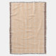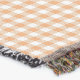 A gingham checkered blanket in shades of beige and white with fringed edges. Shown in horizontal and vertical orientations, exuding a cozy, rustic feel.