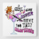 A Girl Can Never Have Too Many MARTINIS A humourous, retro inspired girl in a martini glass in pinks and lavenders from The Martini Diva. Perfect for any wine party or happy hour celebration, Bachelor or Bachelorette Parties or any cocktail party.