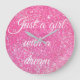 JUST A GIRL WITH A DREAM sparkle hot pink purple glitter large clock with elegant white writing.