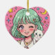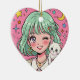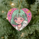A girl with a lovely wink and a cute kitten ceramic ornament