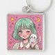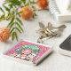 A cute girl with a lovely wink is depicted in vibrant, pop colors. And the kitten perched on her shoulder is just adorable!