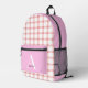 A Girl's Personalised Pink Gingham Monogram Printed Backpack