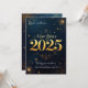 Welcome the New Year 2025 with elegance and stunning luxury. This postcard design combines a rich gradient of midnight blue and gold, creating an atmosphere of class and sophistication. The year '2025' is prominently displayed in beautiful serif typography, accented with metallic gold and silver details, delivering a message of hope and joy for the fresh start ahead. Surrounded by sparkling stars and intricate frost-inspired patterns, this postcard symbolises a stylish and prestigious beginning to the year to come.