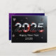 Step into 2025 with a postcard design that blends futuristic innovation with refined elegance. Featuring a dark metallic gradient with subtle holographic accents, this design evokes a sense of sophistication and high-tech allure. The year '2025' stands bold in a sleek, modern font, glowing with silver neon and platinum highlights, creating a striking visual. Geometric shapes, like floating triangles and circles, add depth, while soft glowing lines and reflections bring a dynamic, futuristic feel. "Happy New Year 2025" is elegantly displayed in a minimalist serif font, radiating luxury and class. This postcard embodies a celebration of innovation, optimism, and the bright possibilities of the new year.