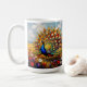 A Gold and Blue Peacock in Flowers Coffee Mug