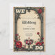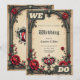 A gothic romance. An ornate, gothic-style frame surrounding a beige background. Red roses with dark green leaves are arranged around the frame, particularly in the corners. At the bottom centre, there is a decorative heart-shaped emblem with the word "LOVE" inscribed in a stylised font.