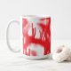 A graphic design featuring bold red and orange sha coffee mug