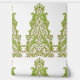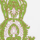 This design depicts an intricate and ornate floral pattern. The design features symmetrical arrangements of vine-like elements with delicate leaves and flowers. The predominant colours are shades of green, with hints of pink and white, creating a harmonious and elegant composition. The pattern is highly detailed, with intricate linework and decorative flourishes throughout. It appears to be a classical and traditional design, reminiscent of vintage wallpaper or textile patterns.