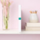 The design is a bright blue square with a uniform colour and a smooth texture. It stands out against the background with a striking visual contrast.