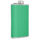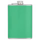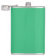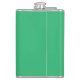 a green background with a white border hip flask