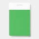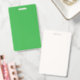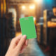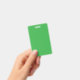 a green background with a white border ID badge