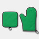 a green background with a white border oven mitt & pot holder set