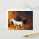 A Grey Pony and a Black horse in a Stable Postcard