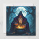 Halloween party invitations with ai art depicting a warlock under a full moon brewing up a wicked Halloween party!