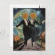 A cute couple with flowers for their head dance on train tracks in front of planet Earth surreal fantasy art