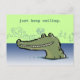 The green cartoon crocodile enjoys a bath in the jungle river. It smiles broadly, showing many pointed crocodile teeth. The words on this postcard can be changed according to your wishes.