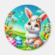 Easter in the spring garden sits a hare and is pleased with his Easter eggs he wants to give! A Digital Illustration to Easter