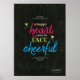 "A happy heart makes the face cheerful" Proverbs 15:13. An inspirational and motivational bible quote on a vintage chalkboard background with colorful typography. This will make a perfect gift for a friend or loved one, or this aspirational quote will make a stylish addition to your home.