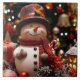 This design immerses you in the atmosphere of Christmas with a smiling and elegant snowman, wearing a Scottish hat and a red scarf. It is accompanied by festive decorations, such as red berries, pine apples and a small white house. In the background, an illuminated Christmas tree and gifts complete the picture.