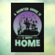 The cling has a black background with the words "A Haunted House Is A Happy Home" in a sea green Halloween font, giving it a classic and spooky look. The circular picture in the centre of the cling features a creepy haunted house with barren trees, birds, and bats in the sky against a purple background, adding a modern and eerie touch to the overall design.