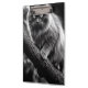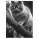A menacing cat with glowing eyes, sharp teeth, and large claws is captured in a dark and eerie setting. Its fur bristles as it lets out a chilling "meow," embodying both ferocity and mystique. Shadows and a haunting atmosphere enhance its terrifying presence.