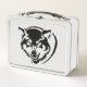 This is a standard metal lunchbox that appears to work just fine. We designed this box ourselves with an uploaded photo and custom text on the front and back. It looks absolutely beautiful except the front of the lunchbox is not centered like it shows in the photo. The print borders don't align with the inset flat part of the box where the preview photo online showed it perfectly centered in there. The back looks nice and centered though.