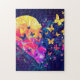 This puzzle is a stunning and captivating product that will delight puzzle enthusiasts of all ages. Featuring a mesmerising photo, the puzzle showcases a beautiful composition of half heart and half flying butterflies. The vibrant colours of space blue, pink, and yellow, along with the gradient background, create a visually striking experience that is both soothing and invigorating. Get ready to immerse yourself in the challenge of piecing toge5this exquisite puzzle and witness the magic unfold as the heart and butterflies come together in perfect harmony.