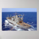A helicopter clears the flight deck of the Military Sealift Command ammunition ship USNS Flint featured with aircraft.