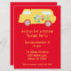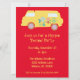 A cool hippy themed party, this invitation features a bright red background with a vintage styled van at the top. Using pale yellow font, customise yours today!