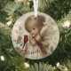 A winged child in flowing white shares a quiet moment with a red cardinal, framed by festive holly. The artwork glows with seasonal magic and innocence. Personalize the name to create a keepsake full of meaning.