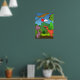 Cartoon looking dinosaur's created using A.I. art. A great fun scene of dinosaur's at play in bold colours. Fun for any child or young at heart adult. Great for the playroom or a bit of fun at the office.