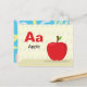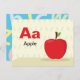 Letter A is for Apple in our Alphabet Flash Card set. Get all 26 letters of the alphabet! A double-sided postcard that is great for memory games and teaching, geared for education, schools, teachers and homeschool for kindergarten and babies. All text is editable if you need to customise.