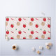 Red apple with text on pink background pattern design.
