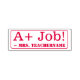 This motivating rubber stamp design features the inspiring message "A+ Job!" and a personalised teacher's or educator's name. It could be used by a school teacher, educator, instructor, or tutor when marking assignments, to indicate that the student has done well.