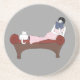 An Art Deco era lady lounges reading a book on an antique-style red upholstered daybed in the mixed media image on this coaster. The flapper girl wears a slinky, pink negligee and she has finger curls in her shiny black hair. At her feet sits a quite contented big, white cat. From my original digitally created image, this design will appeal to cat lovers, book lovers and vintage fans alike!