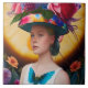 An image of a lady with a floral sun hat. This is an image created by AI with floral theme design.