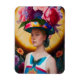 An image of a lady with a floral sun hat. This is an image created by AI with floral theme design.