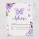 Give your advice to this future mom with this customizable shower advice card. Beautiful design for your baby girl shower with a Beautiful Thematic Butterfly and watercolor flowers in shades of Roses and Purples. Ideal to welcome that sweet girl on her way!