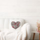 Red, black and white design with graphic heart.