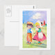 A Little Bit Shy Postcard. This postcard is decorated with a watercolor painting of a Dutch girl and boy at their first meeting.