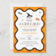 The design features an adorable baby ghost playfully nestled among a patch of pumpkins, capturing the whimsy and warmth of the season. The vibrant colour palette of orange, black, and purple adds a festive touch, creating a lively and inviting atmosphere for your guests. The colours are carefully chosen to be gender-neutral, making this invitation ideal for celebrating either a boy or a girl.