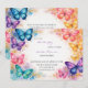 Create a stunning and elegant invitation with this watercolor butterfly glitter frame design. Featuring vibrant pastel butterflies in shades of blue, purple, pink, teal, and golden orange, accented with sparkling glitter splashes, this artwork surrounds a beautifully blank center space perfect for adding your own custom text. Ideal for birthdays, baby showers, bridal showers, weddings, quinceañeras, sweet 16 parties, or any special celebration. The soft watercolor background and shimmering gold accents add a whimsical, feminine, and magical touch to your event stationery. Personalize it easily to match your theme and make your occasion unforgettable.
