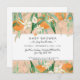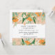 Soft peach apricot background colour can be changed and is blended with watercolor artwork of Cutie oranges, flower blossoms, baby fruit, citrus and eucalyptus leaf greenery for "A Little Cutie Oranges n Eucalyptus Baby Shower Invitation. Reverse side has typography text, "a little cutie is on the way," and another cutie orange, leaf foliage and your baby-to-be's name if you have chosen it or simply erase the text if you haven't. Artwork by internationally licensed artist and designer, Audrey Jeanne Roberts, copyright.