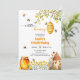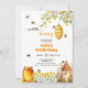 A sweet Birthday theme with bees, jar of honey, a hive, and yellow flowers on the front and back! You can personalise this invitation with your own details.