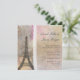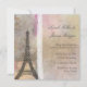 Soft, romantic feel with pastel colours of cream and pink with a map of Paris screened in the background and white old fashioned lace accent. Vintage look yet stylish for today's bride. Eiffel tower is perfect for the French or French themed wedding. Easily edit for your own wedding invitation. Showcase your invitations in style!