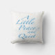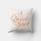 The phrase "A Little Peace and Quiet" in blue, is printed over a light blue floral design. On the reverse side of the pillow is a similar light orange floral design with the phrase "A Quiet Spot" printed over it in orange. Two pillows in one. Show the message that best suits your mood. Great gift for any grandma or mother.
